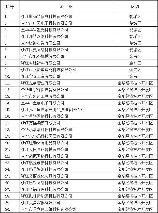附件:2018年第一批金華市高新技術(shù)企業(yè)認(rèn)定名單